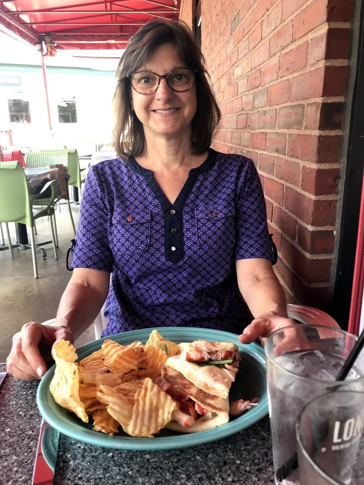 Thursday morning, we packed up the RV and headed out stopping briefly at the office to top off the propane tank. We had Freeport and L.L. Bean in our sights. Jane called ahead for directions and we easily found the RV parking lot. A few blocks away we discovered the L.L. Bean outlet store. We weren’t impressed with the merchandize (nor prices) so we walked around what was an outlet shopping center. As we were searching for a place to eat lunch, we saw a huge L.L. Bean store, the anchor store for the L.L. Bean CAMPUS! Before embarking on that adventure, we stopped for lunch at Linda Bean’s Maine Kitchen & Topside Tavern. We were seated outside upstairs. Jane had a grilled cheese lobster panini sandwich and I had a lobster roll. Both were delicious.